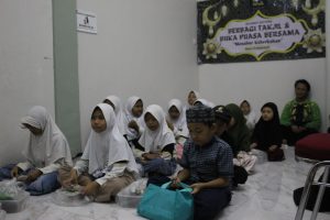 Setelah kegiatan berbagi takjil, acara dilanjutkan dengan buka puasa bersama di aula yayasan. Suasana kekeluargaan begitu terasa ketika seluruh peserta duduk bersama menikmati hidangan berbuka puasa. Kegiatan ini juga diisi dengan Kultum singkat yang disampaikan oleh bapak Arafat, yang mengingatkan pentingnya berbagi dan memperkuat keimanan di bulan Ramadan.